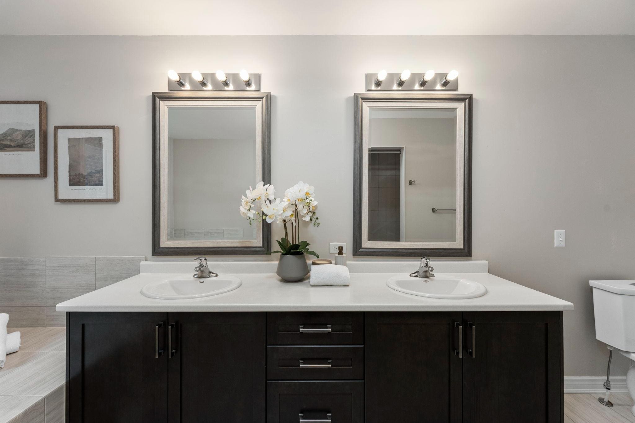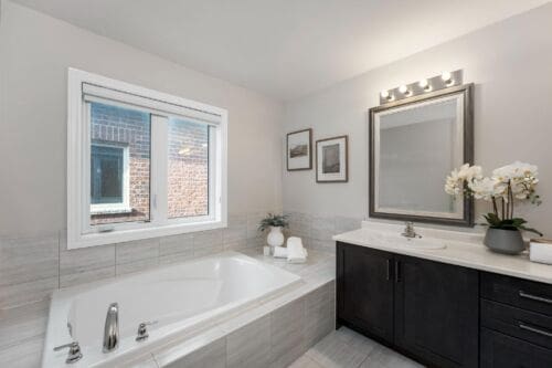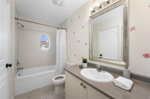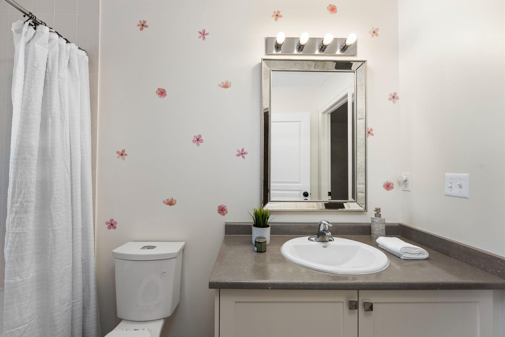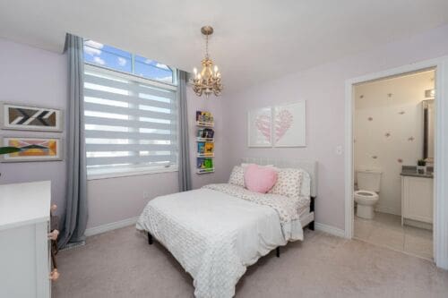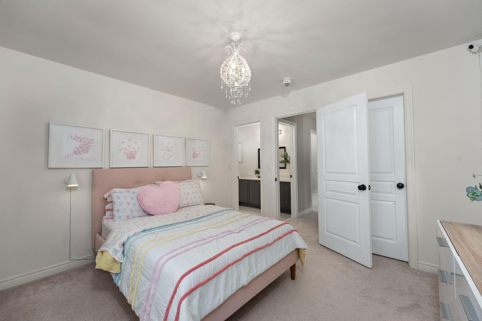 Upstairs, a versatile family room provides the perfect space for movie nights or a children’s play area. Each bedroom enjoys access to its own bathroom, offering comfort and privacy for everyone. The primary suite is a true retreat with two generous walk-in closets and a luxurious 5-piece ensuite featuring a shower and freestanding soaker tub. Step outside to a fully fenced and landscaped backyard complete with a patio ideal for summer barbecues and outdoor entertaining.