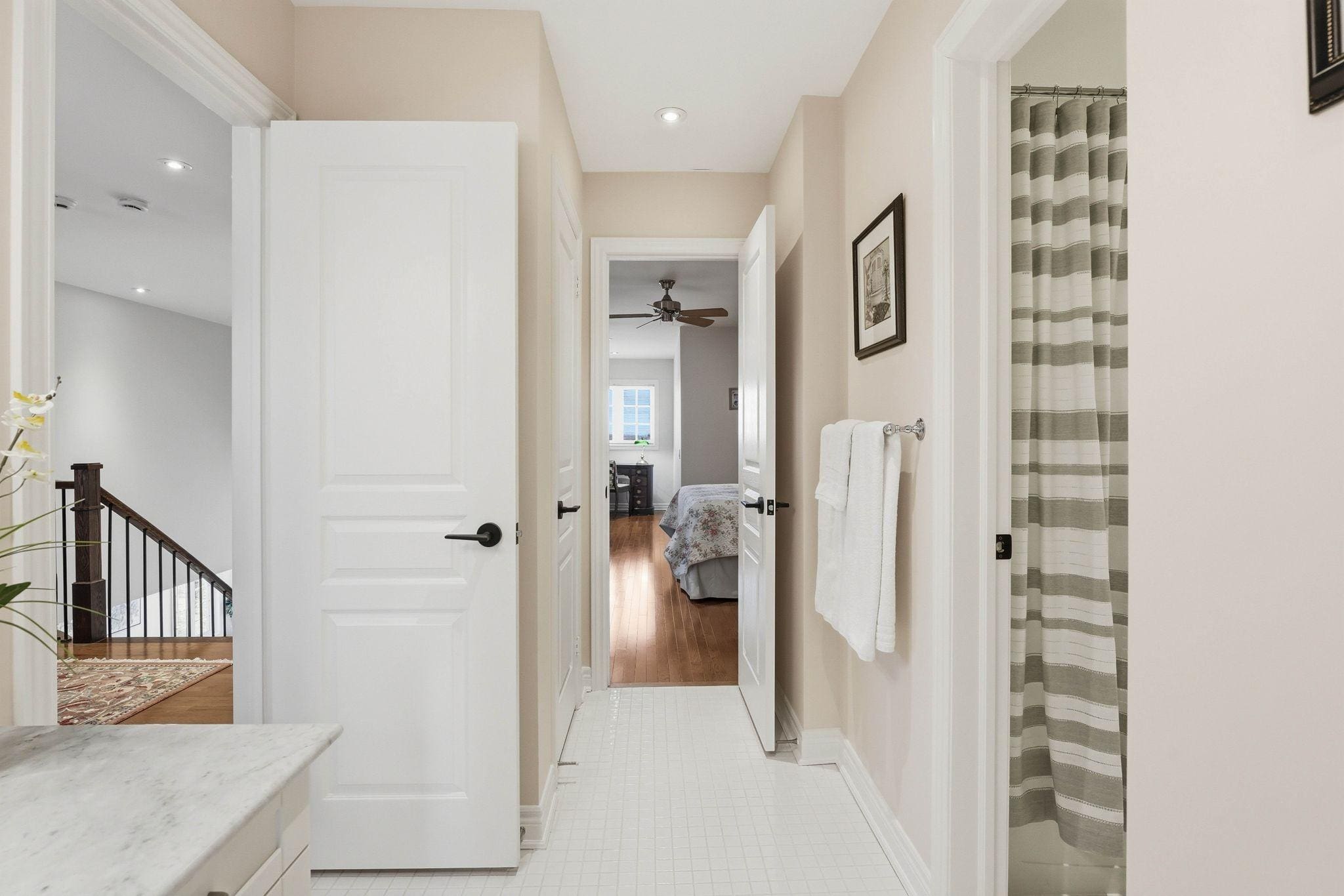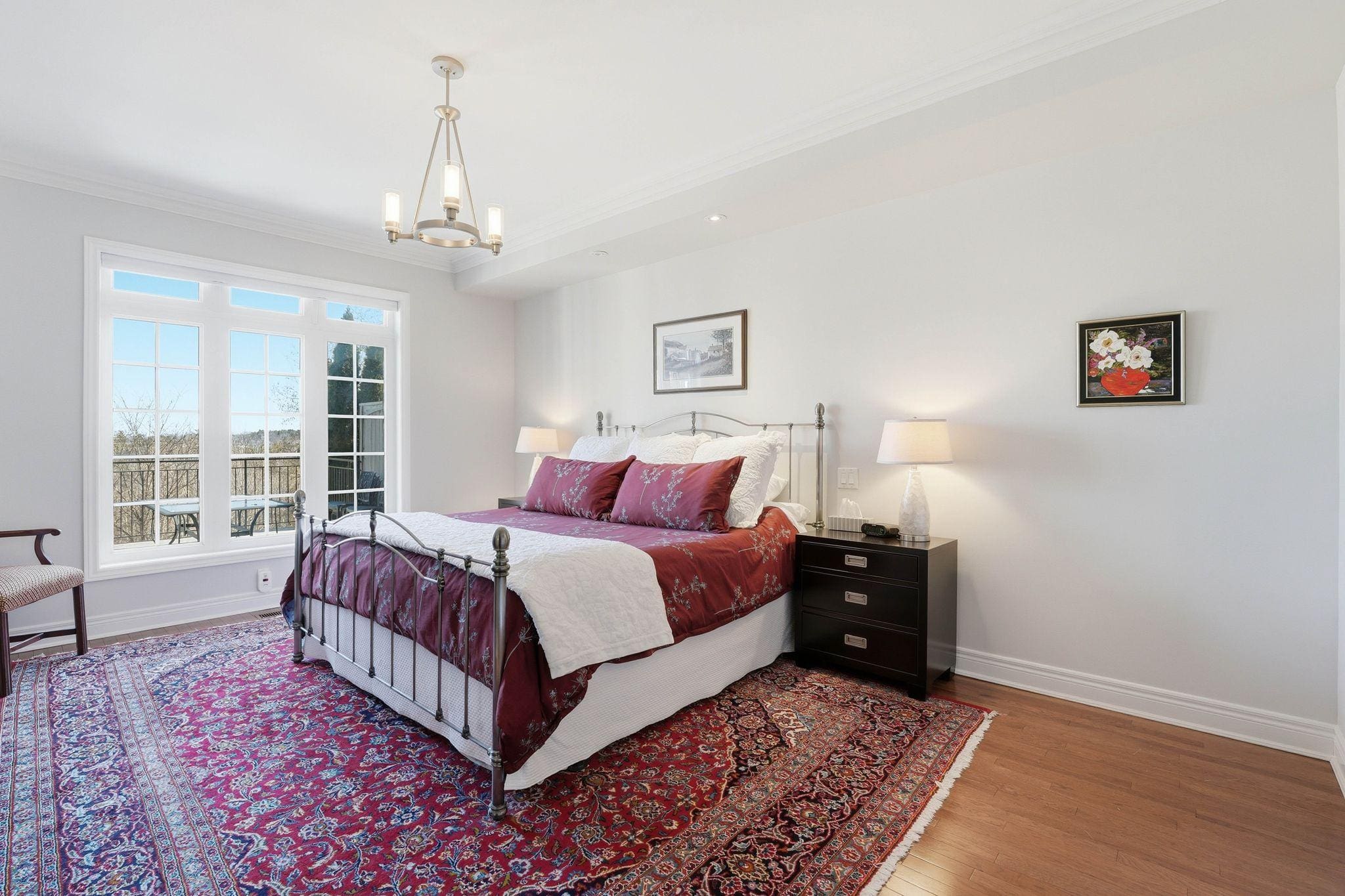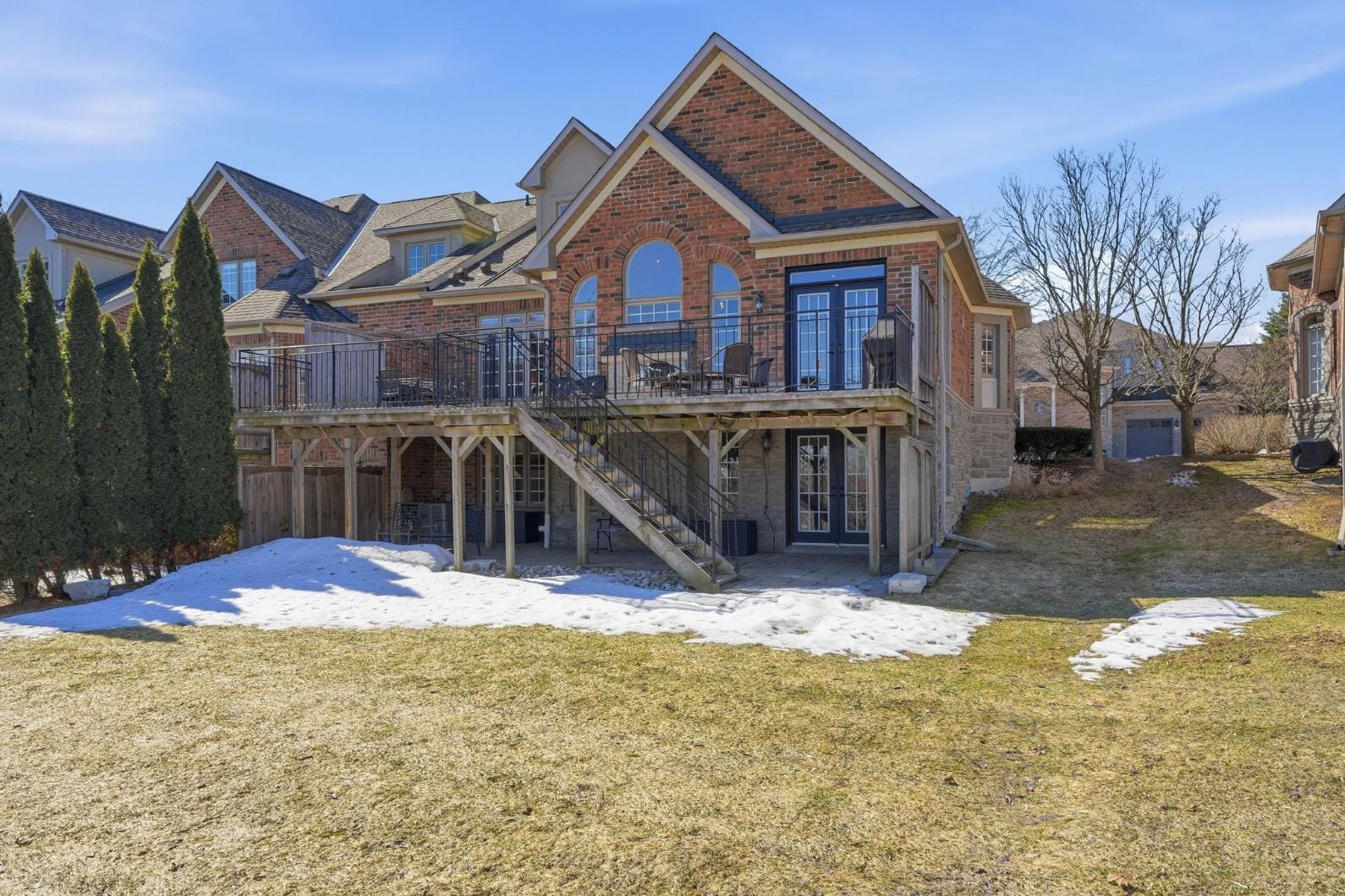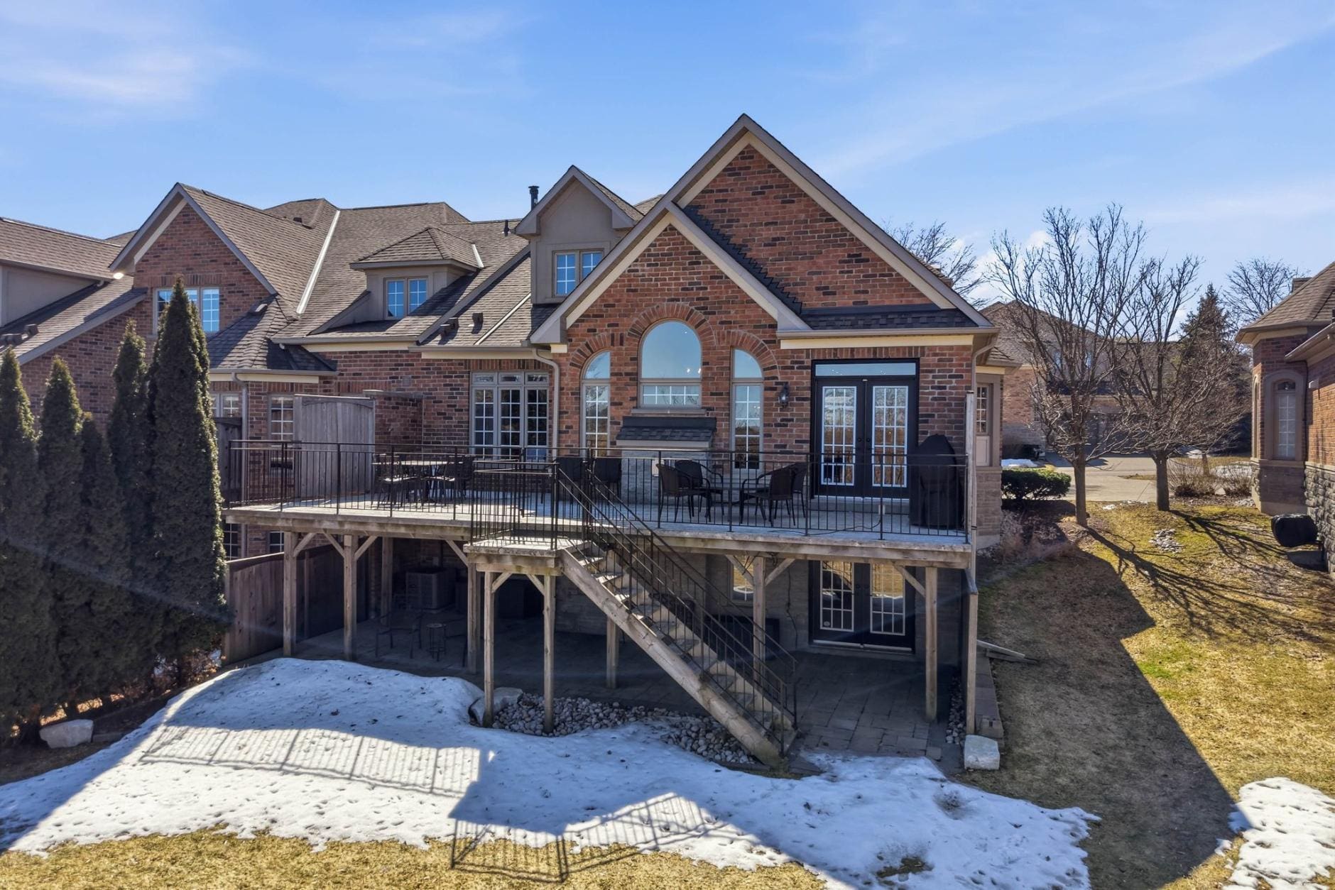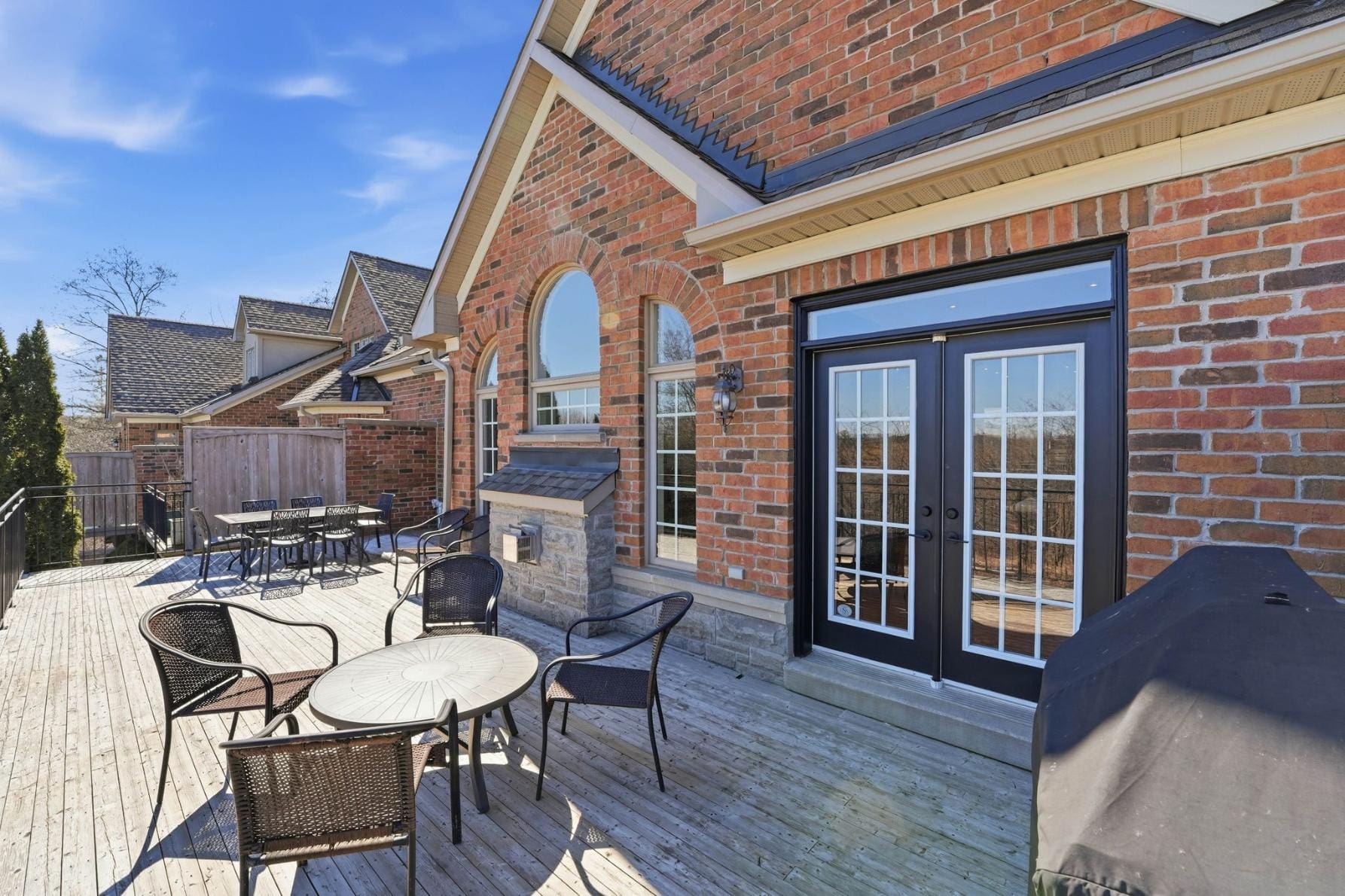 Backing onto greenspace, the backyard features a large deck with BBQ gas line and outdoor speakers, lower interlock patio, and landscaped perennial gardens. Complete with a double car garage, main floor laundry, whole-home sound system, and security features, this is low-maintenance luxury living without compromise.